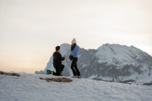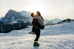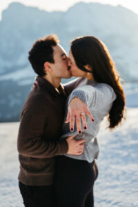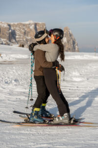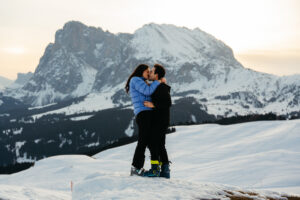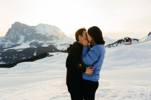 We reached the viewpoint, the vast plateau of Alpe di Siusi stretching out beneath us. Abdel caught my eye as he pulled Lauren into a hug, and I gave him a subtle thumbs up, so he transitioned down to one knee.