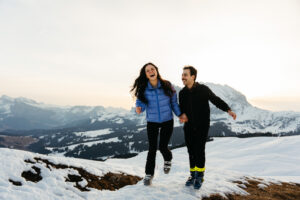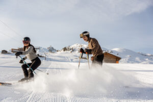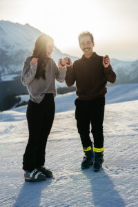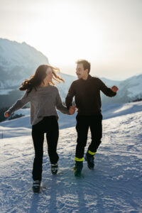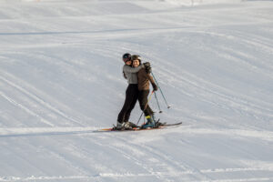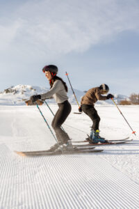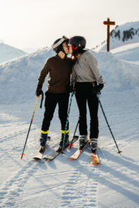 - The Action: Since they both love skiing, we captured them carving through the fresh morning corduroy.