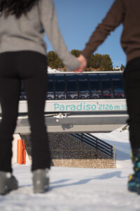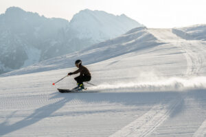 How do you convince someone to head out into the freezing morning air before the lifts officially open? You invent a tour. With a little help from the amazing team at Paradiso Pure Living, we “marketed” a special sunrise ski tour to the couple. To Lauren, it was just a perk of staying at such a forward-thinking hotel. Little did she know, it was the only way to ensure we’d be standing on the mountain in total solitude as the light began to change.