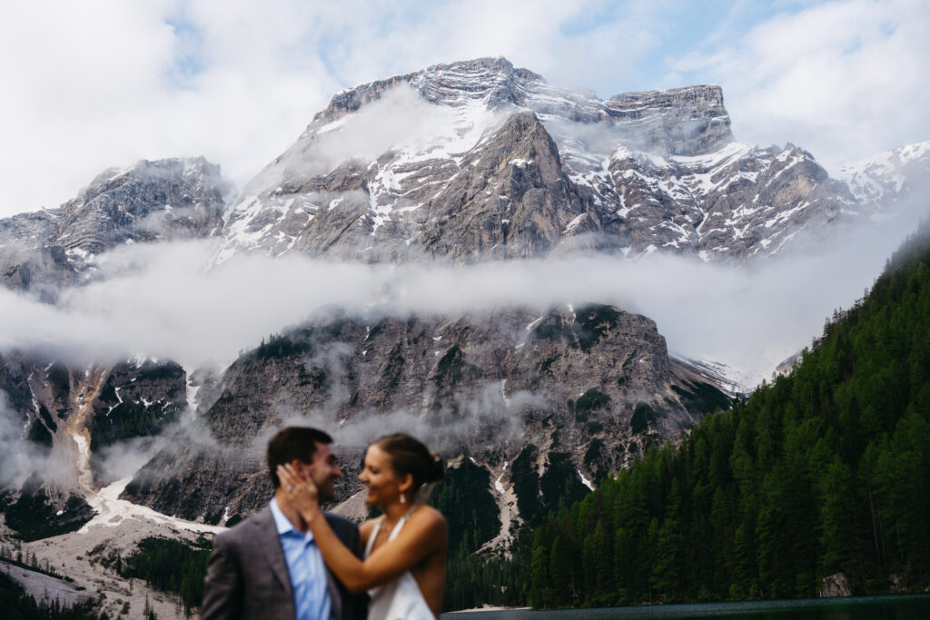If you’re considering exchanging your vows here, remember that the mountains don’t always play by the rules—and that’s actually part of the magic. Many couples worry about a less-than-perfect forecast, but I’ve found that a bit of mist or rain only adds to the cinematic, moody soul of the Dolomites. To keep you dry and looking sharp, I always provide my clients with clear umbrellas; they let the light in and look incredible in photos.