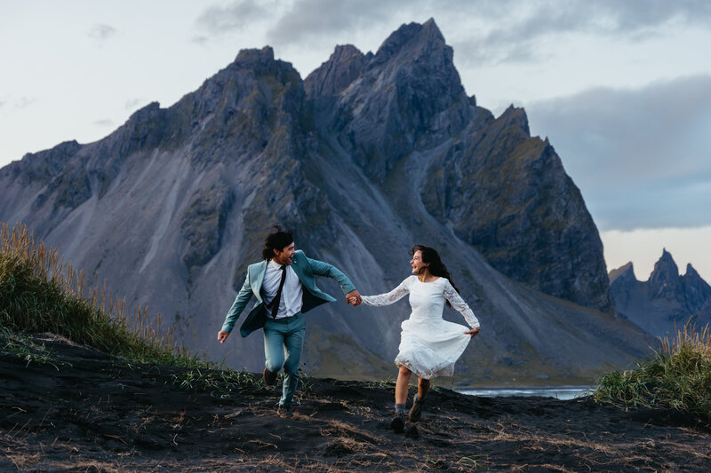 Summer in Iceland is peak season, and for good reason: it’s warm (ish — around 10–15°C / 50–60°F), the highlands are open, and in June/early July, there’s basically no nighttime. Yep, the midnight sun means you can plan your ceremony for 11 PM and still catch epic golden-hour light. You’ll have access to spots like Landmannalaugar and Askja, which are totally worth the hype. It’s also the perfect season for adventures like glacier hikes and horseback rides. The downside? Everybody else thinks so too, so popular spots like Reynisfjara Beach can get crowded. Pro tip: go really early or really late in the day to beat the rush. Oh, and book your car, stays, and everything else early — summer prices are no joke!